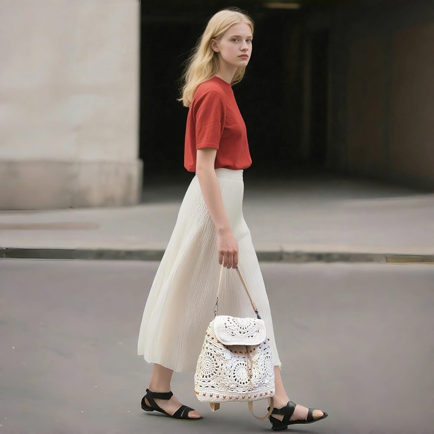 Light, airy, and effortlessly boho. The Eiyye Crochet Backpack is hand-crafted from high-quality cotton rope with a textured crochet pattern that feels soft yet sturdy. A drawstring closure under a flap plus a magnetic snap helps keep essentials secure, while adjustable shoulder straps (up to ~33") let you dial in the fit. Sized for everyday carry—think phone, wallet, makeup pouch, e-reader and a light cardigan—whether you’re headed to the beach, park, or a coffee date.