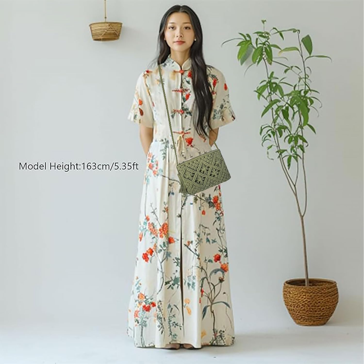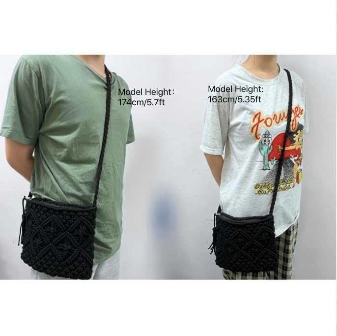 Eiyye Handmade Crochet Crossbody Bag – Cotton Rope Boho Purse with Zipper (10" × 8")