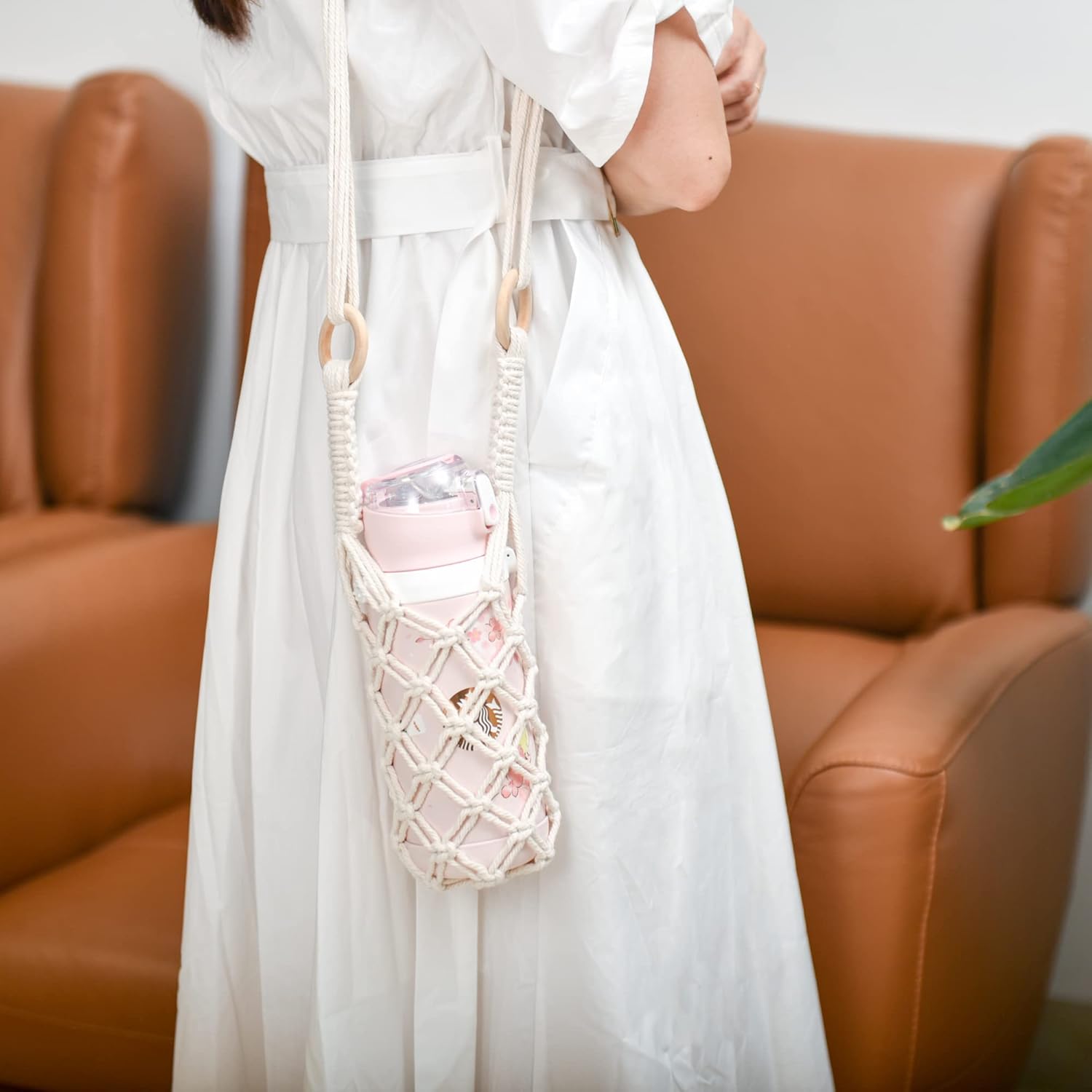 Eiyye 2-Pack Crochet Water Bottle Crossbody Holders – 100% Cotton Beverage Slings (Boho Macrame Style)