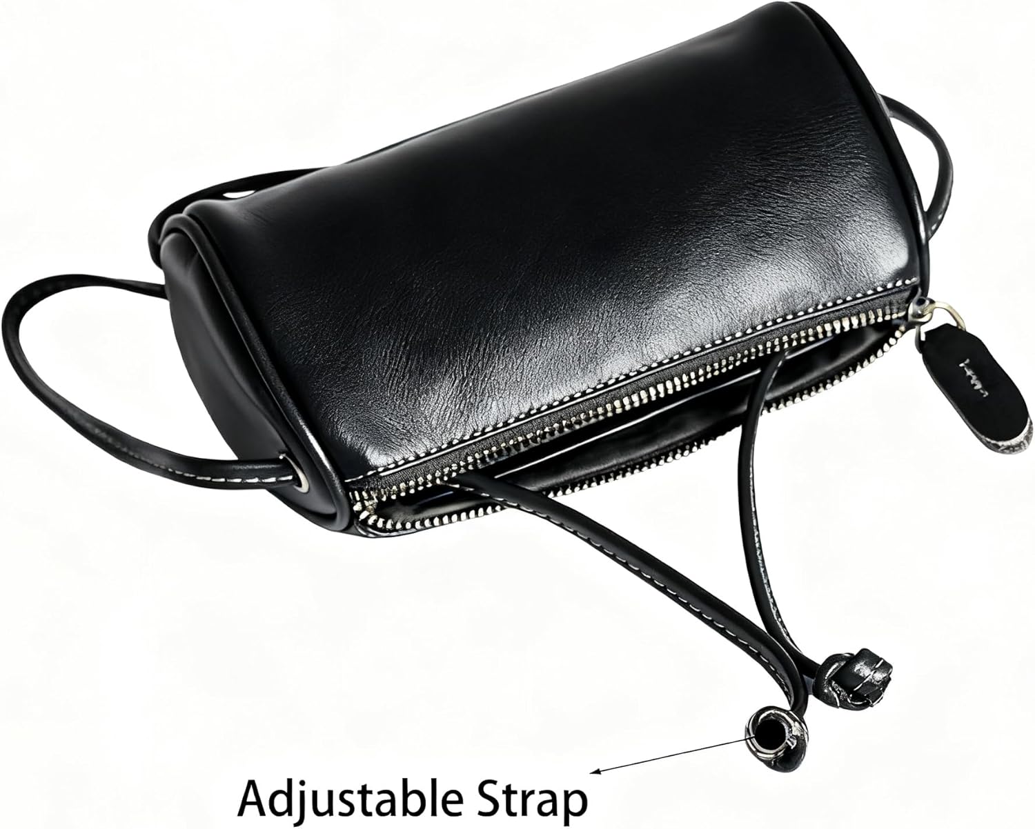 - Premium Genuine Leather: Made from high-quality genuine leather with a soft texture and durable finish, this minimalist cylinder bag offers both elegance and everyday durability.