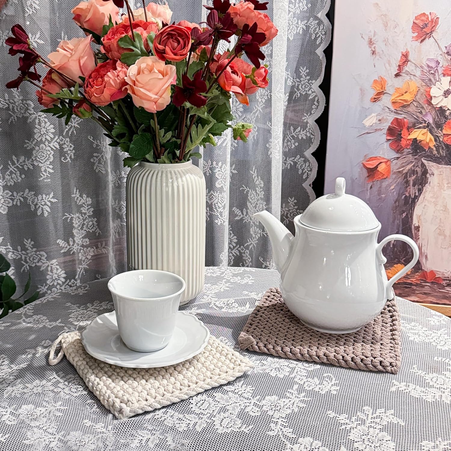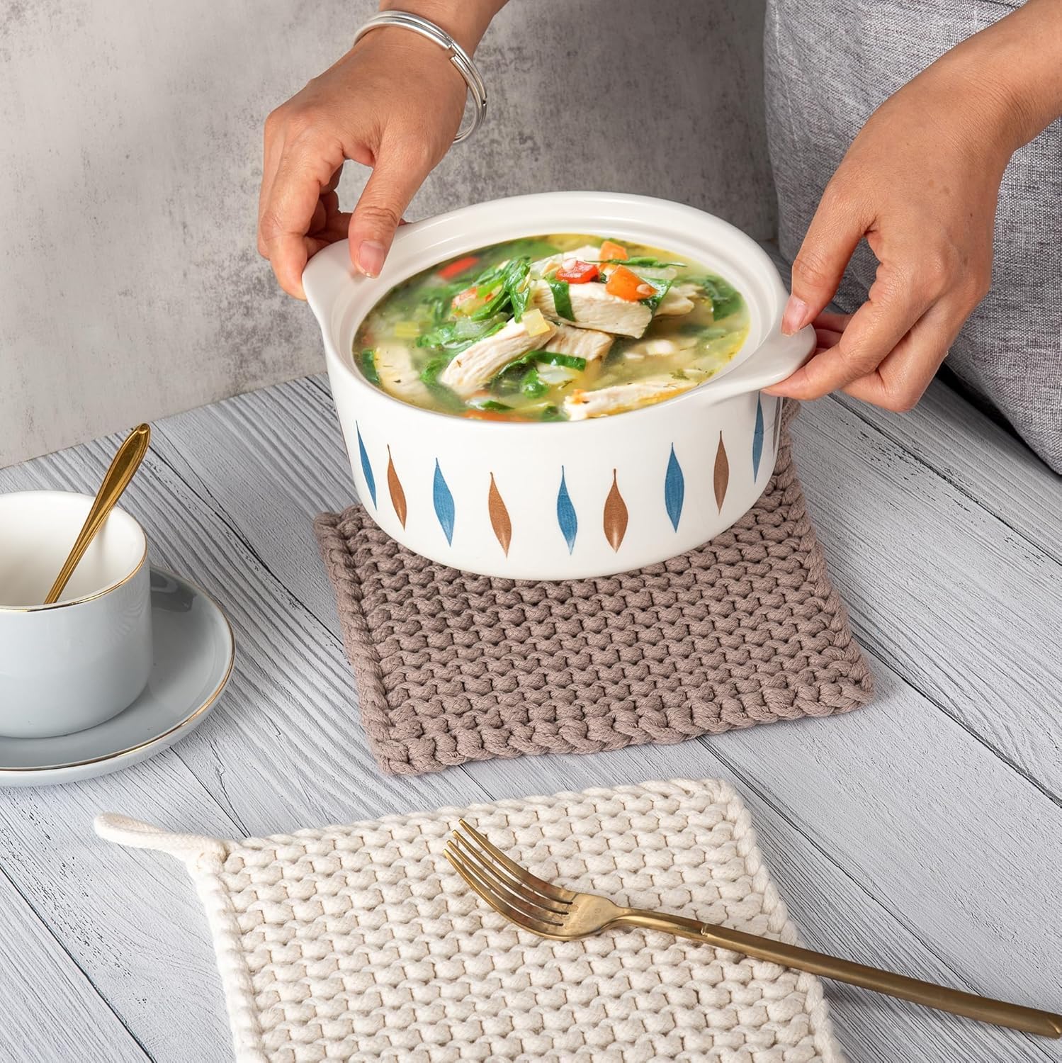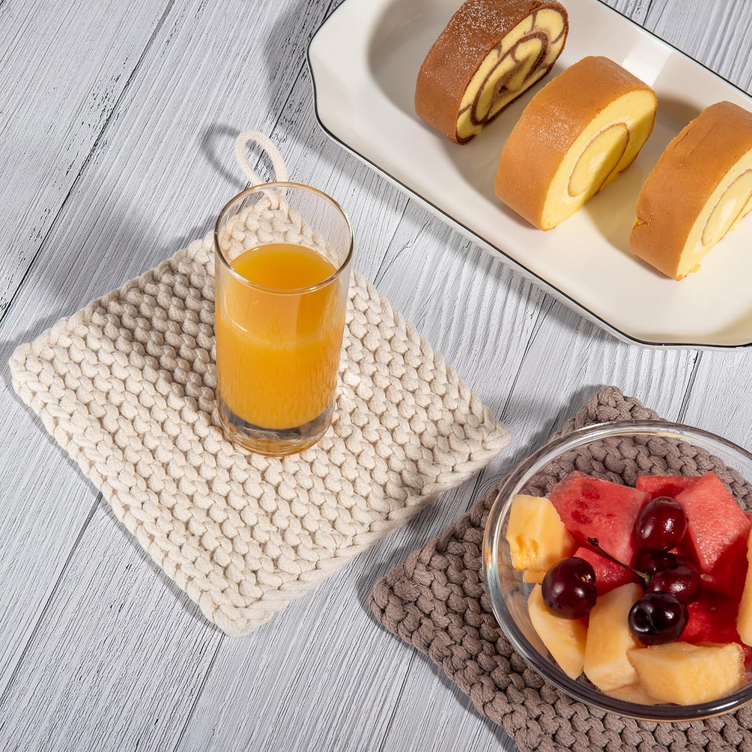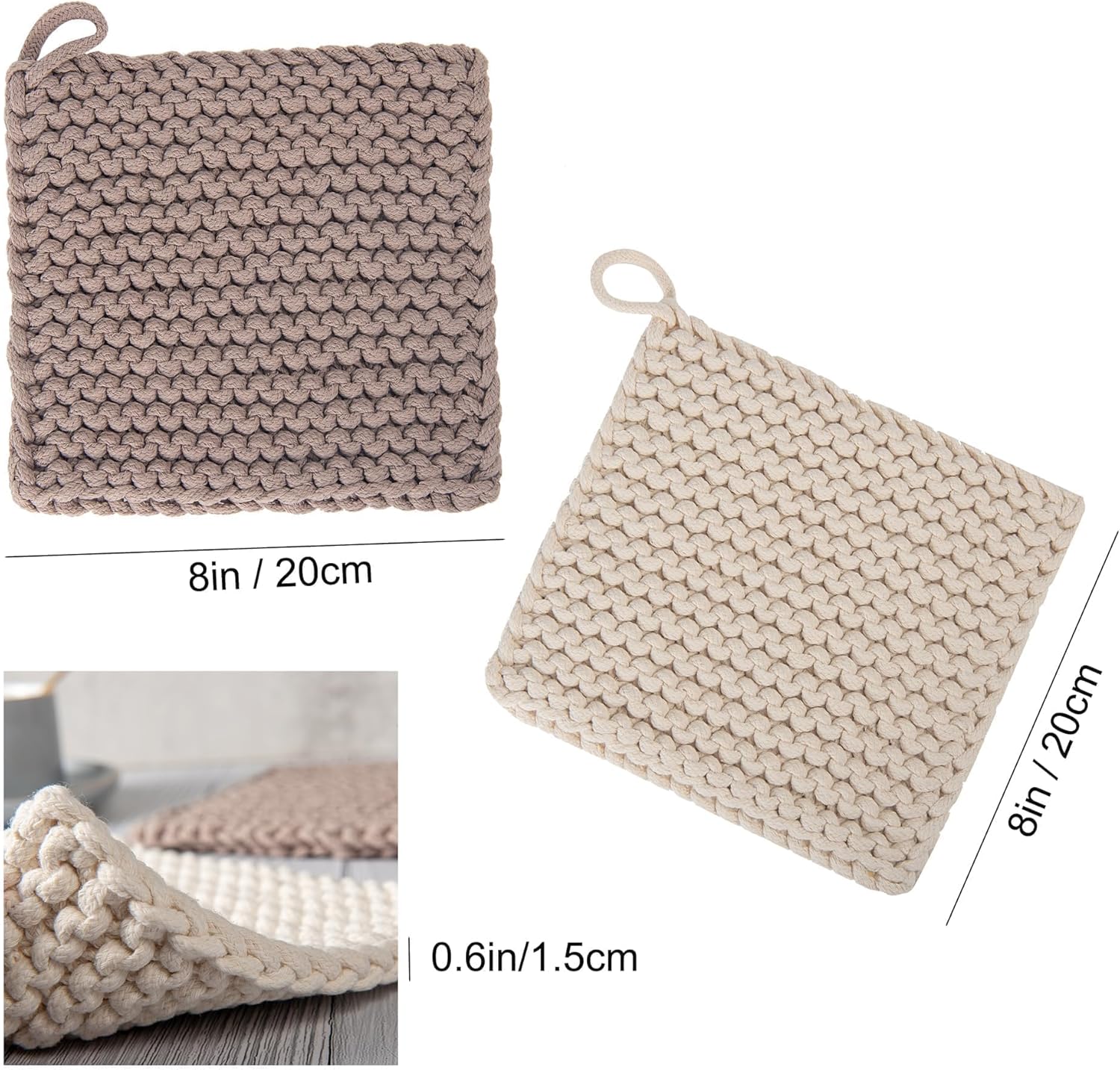 Eiyye Thick Crocheted Pot Holders, Handmade Hot Pads Crocheted Trivets for Kitchen hot Dishes(2-Pack), 8"x8" (White and Taupe)