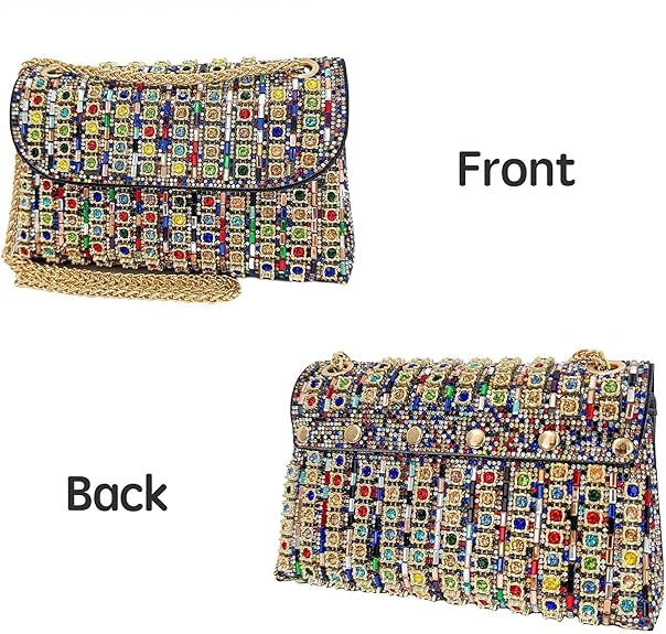 - Dazzling Rhinestone Details: This colorful clutch purse features a front flap inlaid with vibrant rhinestones for a bold bling effect. A magnetic snap closure opens to a main compartment and a handy card slot. The metal chain strap adds both shine and durability,perfect for daily glam or special events.
