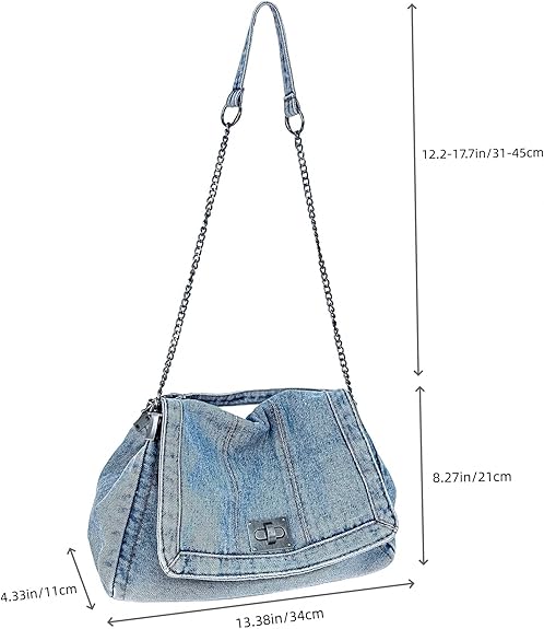 - Vintage Washed Denim & Durable Hardware: Made of premium washed denim with sturdy metal chain and turn-lock closure. The worn-in finish gives this jean bag a timeless, vintage look while ensuring long-lasting use.