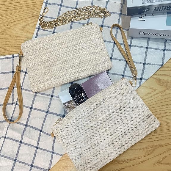 Eiyye Straw Clutch Purse Womens Handbag Boho Summer Beach Purse Wristlet Wallets with Zipper Chains
