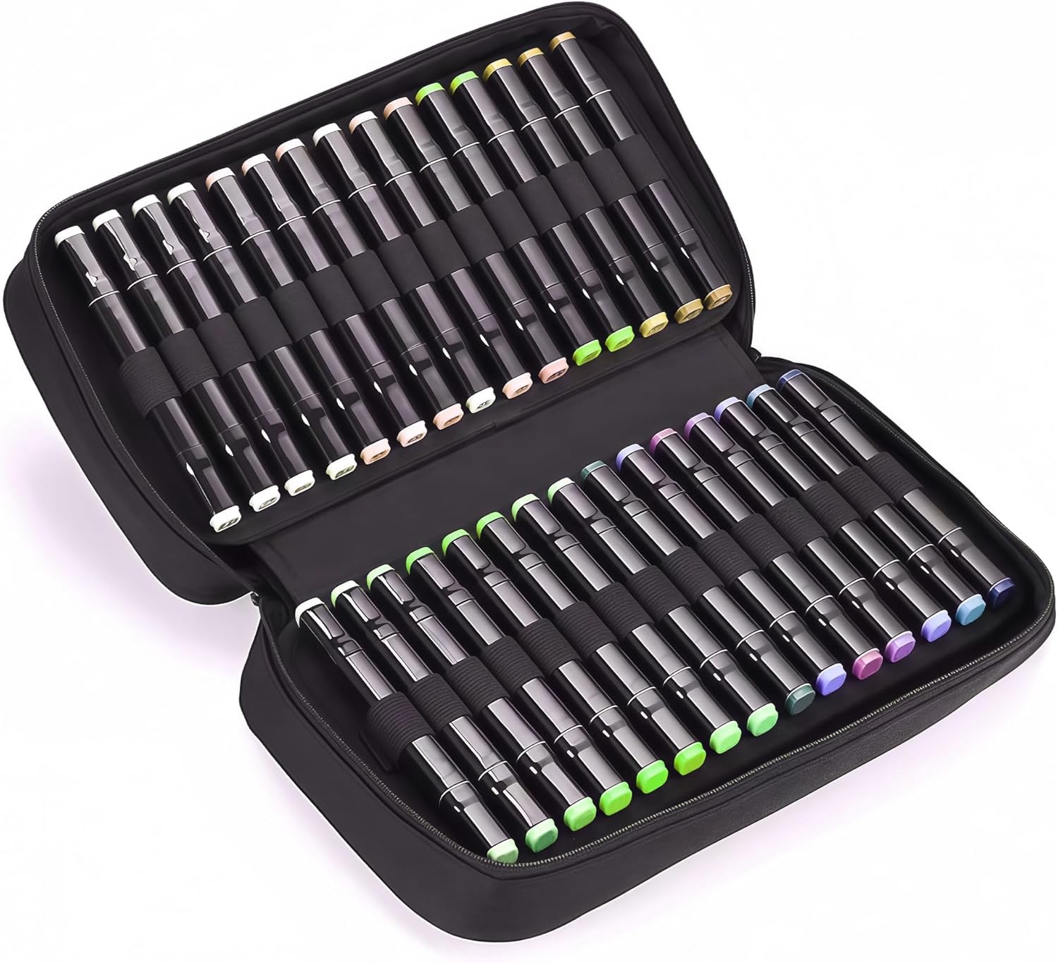 Eiyye Art Marker Portable Pen Case 60 Slots Markers Large Capacity Zippered Pen Holder for Colored Markers