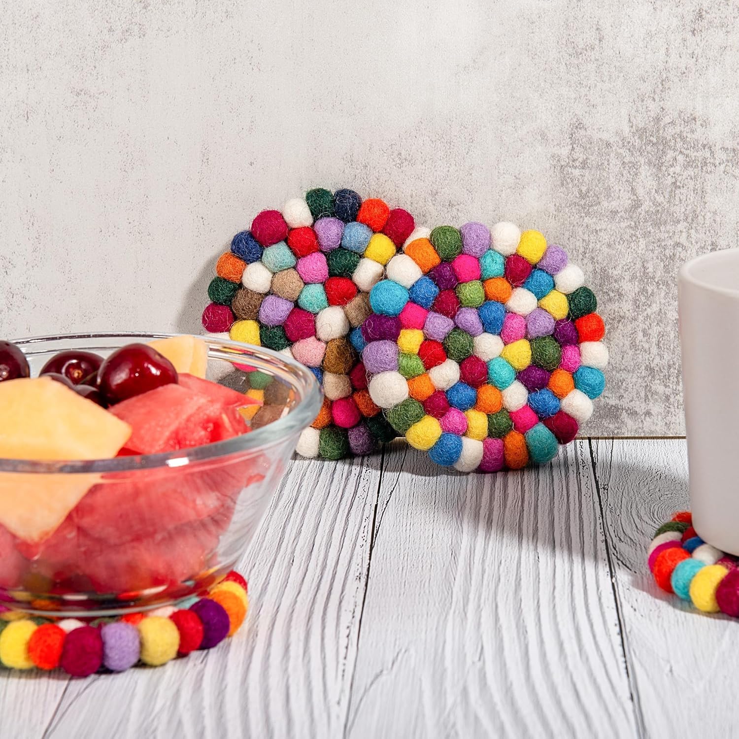 - Stylish and Versatile:With a minimalist and modern design, these colorful coasters add a touch of elegance to your home decor. The round felt ball coasters come in a variety of vibrant colors complements any table setting or decor style, making them perfect for use in your living room, kitchen, office, or bar. They are also suitable for both hot and cold drinks, making them versatile for any occasion.
